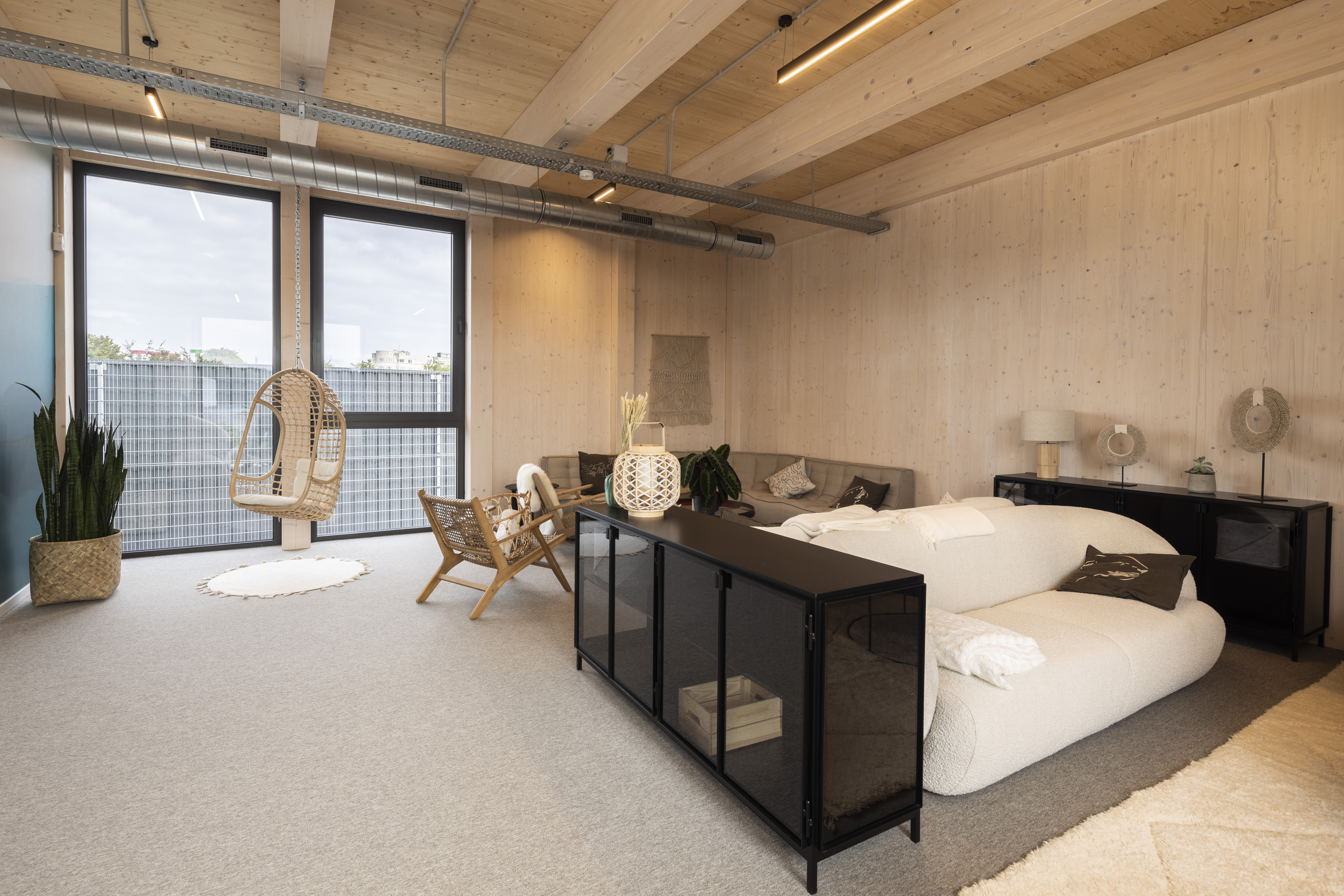 “Misschien logeerde je op skivakantie ooit in een chalet. Dan heb je dat zeker al ervaren: in een CLT-gebouw heb je veel sneller een behaaglijk gevoel. Je hebt dus minder snel de behoefte om de verwarming op te zetten. En omdat hout geen warmte of koude opneemt, krijg je een veel reactiever gebouw. Dat is bij beton helemaal anders. Neem nu in de lente. Mensen zetten hun vloerverwarming een graadje hoger, anders duurt het ’s ochtends te lang voor het hele huis is opgewarmd. Maar als de zon dan in de namiddag op de ramen staat, loopt de temperatuur al snel veel te hoog op. In de zomer heb je het probleem van de warmte-accumulatie. Eens de warmte in de stenen en het beton zit, krijg je je huis niet meer afgekoeld.”