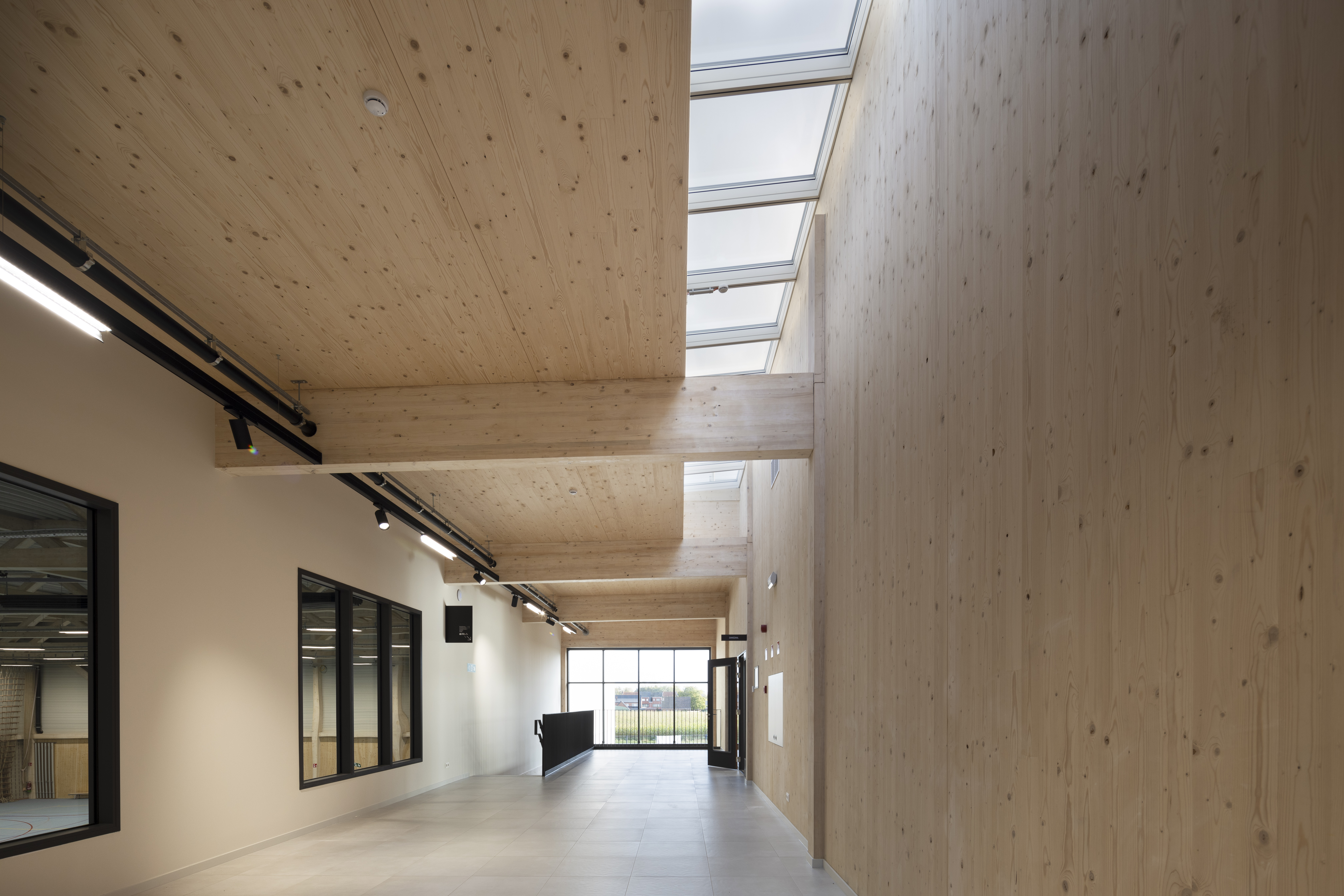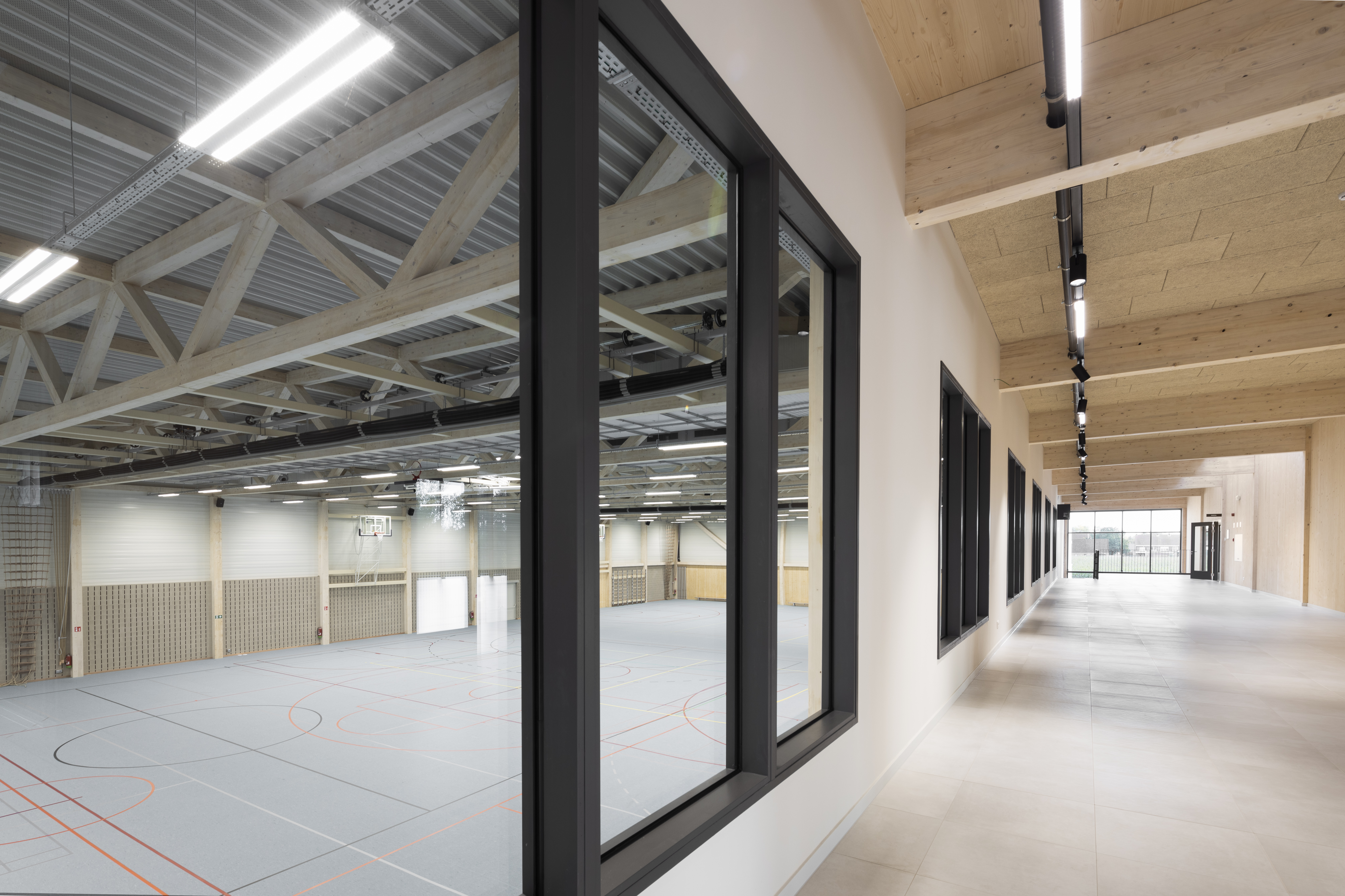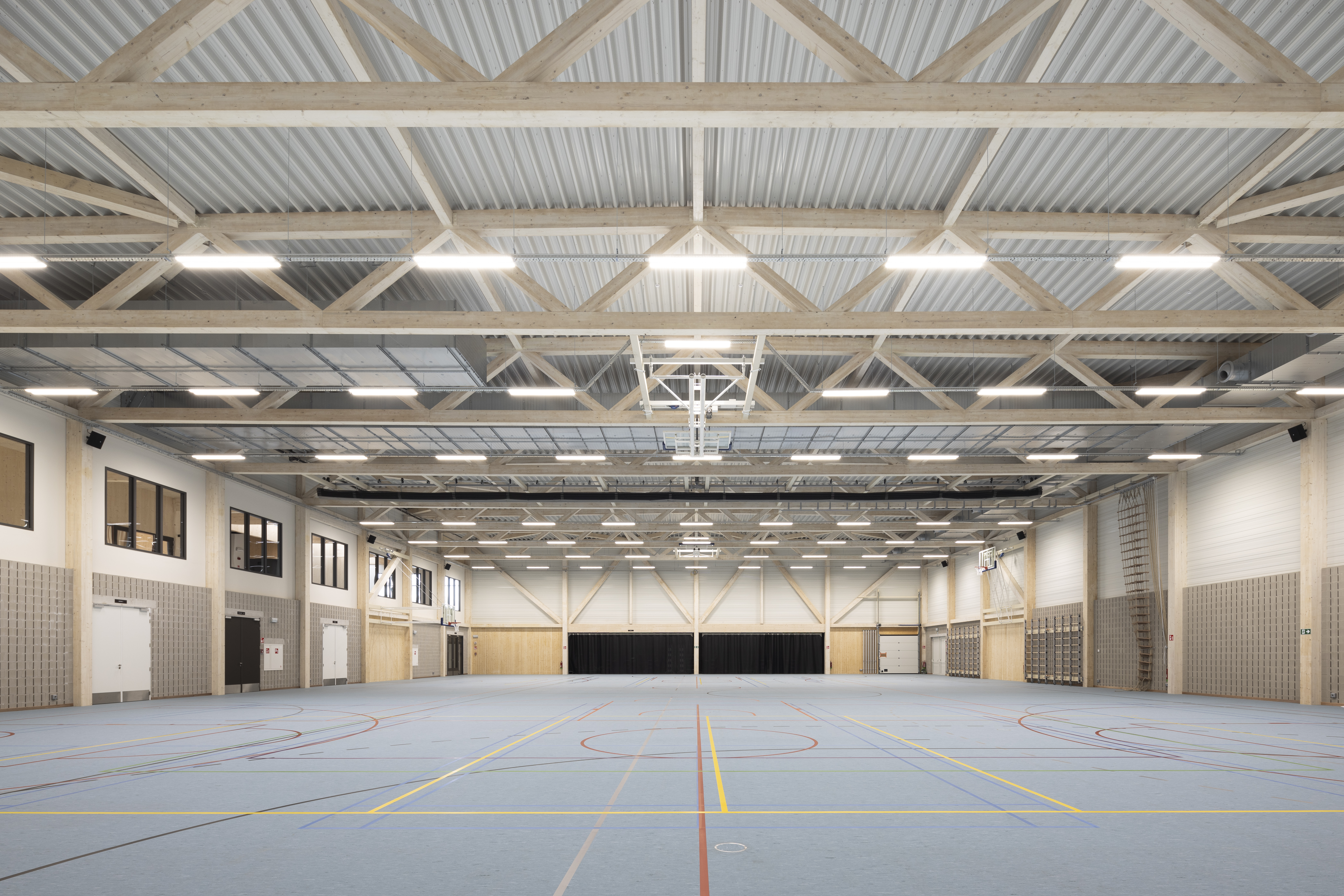 De structuur voor de nieuwe sporthal te Arendonk werd in CLT opgetrokken. Met een totale oppervlakte van 2240m² beschikt deze sporthal over een danszaal, een gevechtsportzaal en een cafetaria.