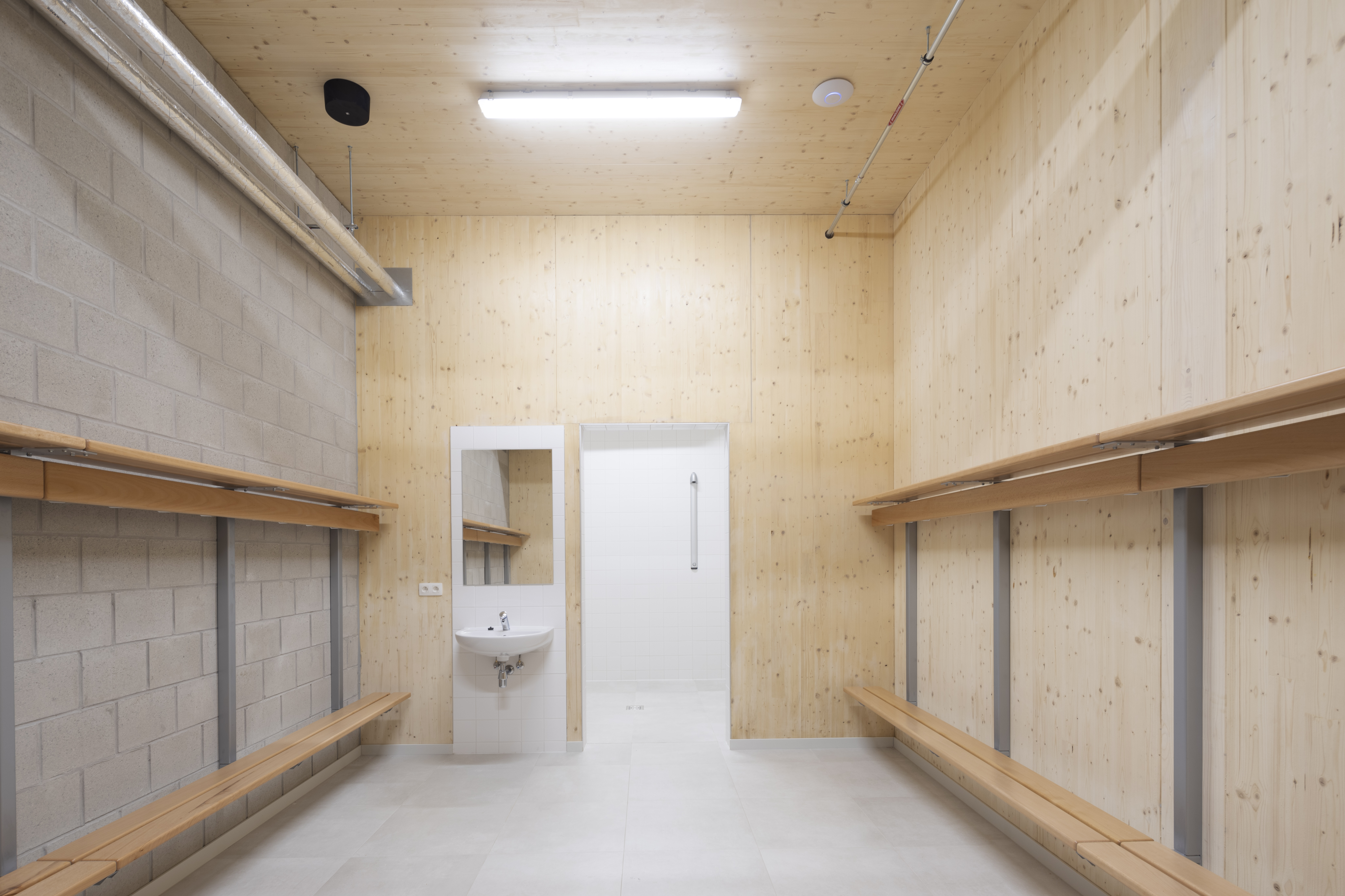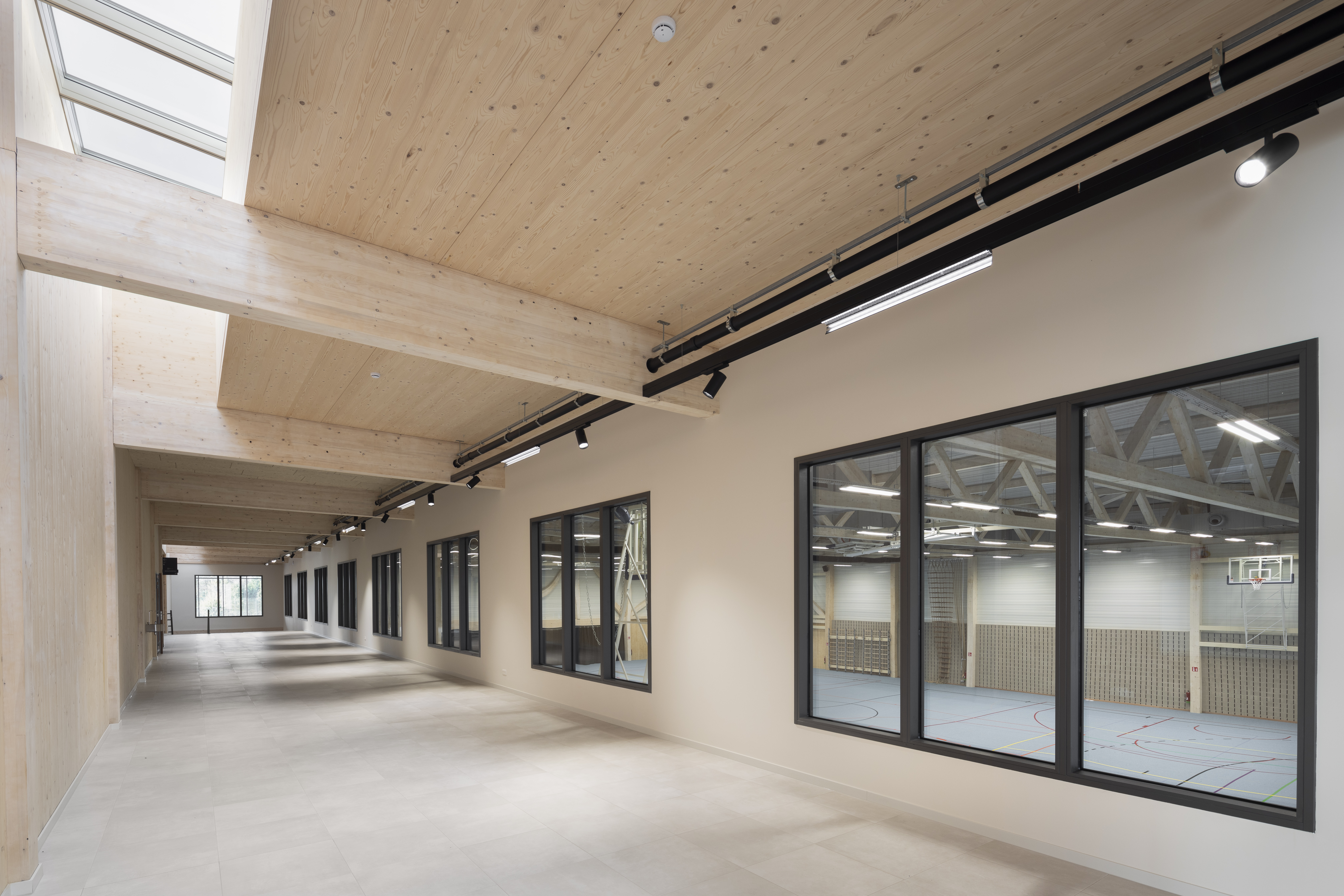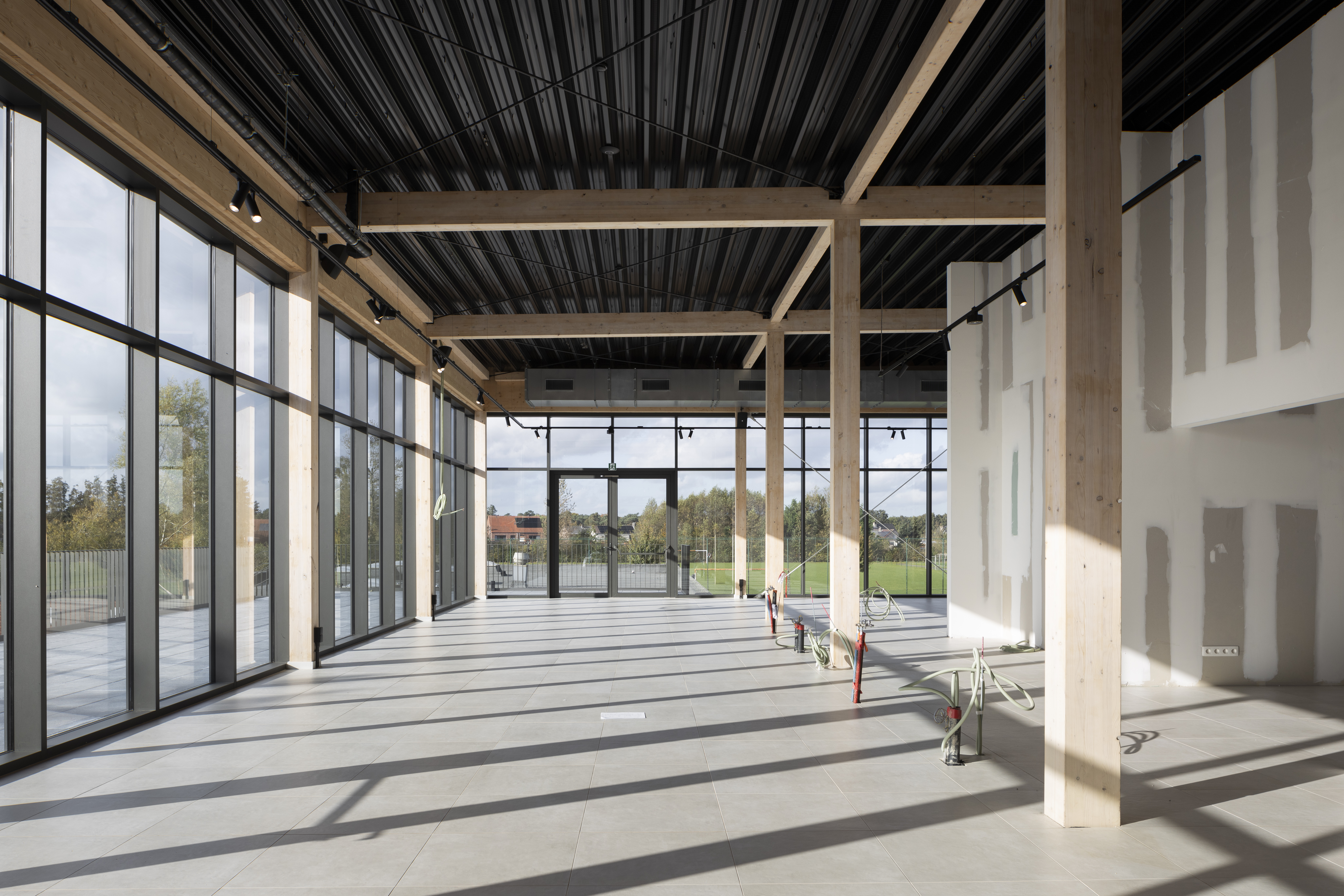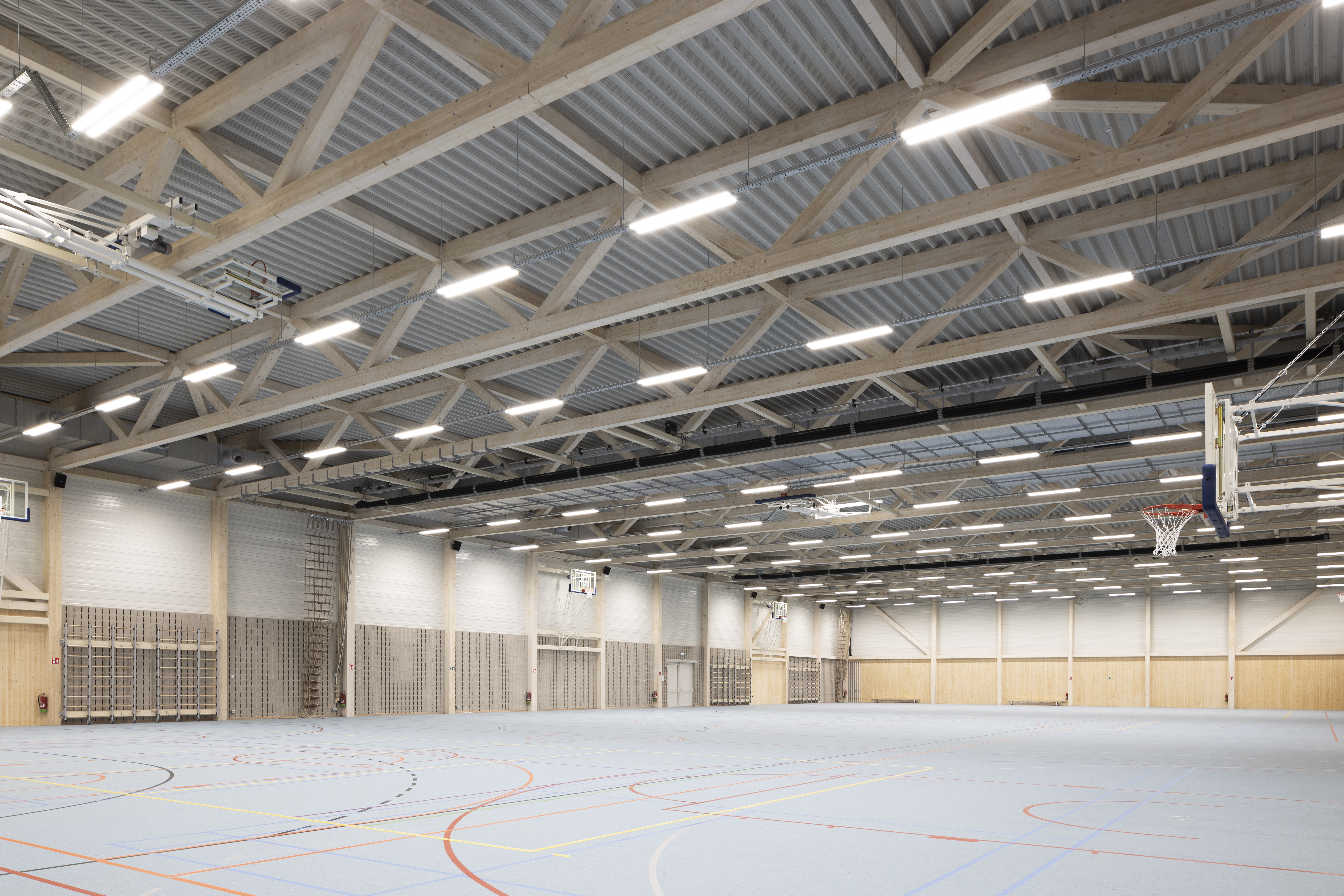 De structuur voor de nieuwe sporthal te Arendonk werd in CLT opgetrokken. Met een totale oppervlakte van 2240m² beschikt deze sporthal over een danszaal, een gevechtsportzaal en een cafetaria.